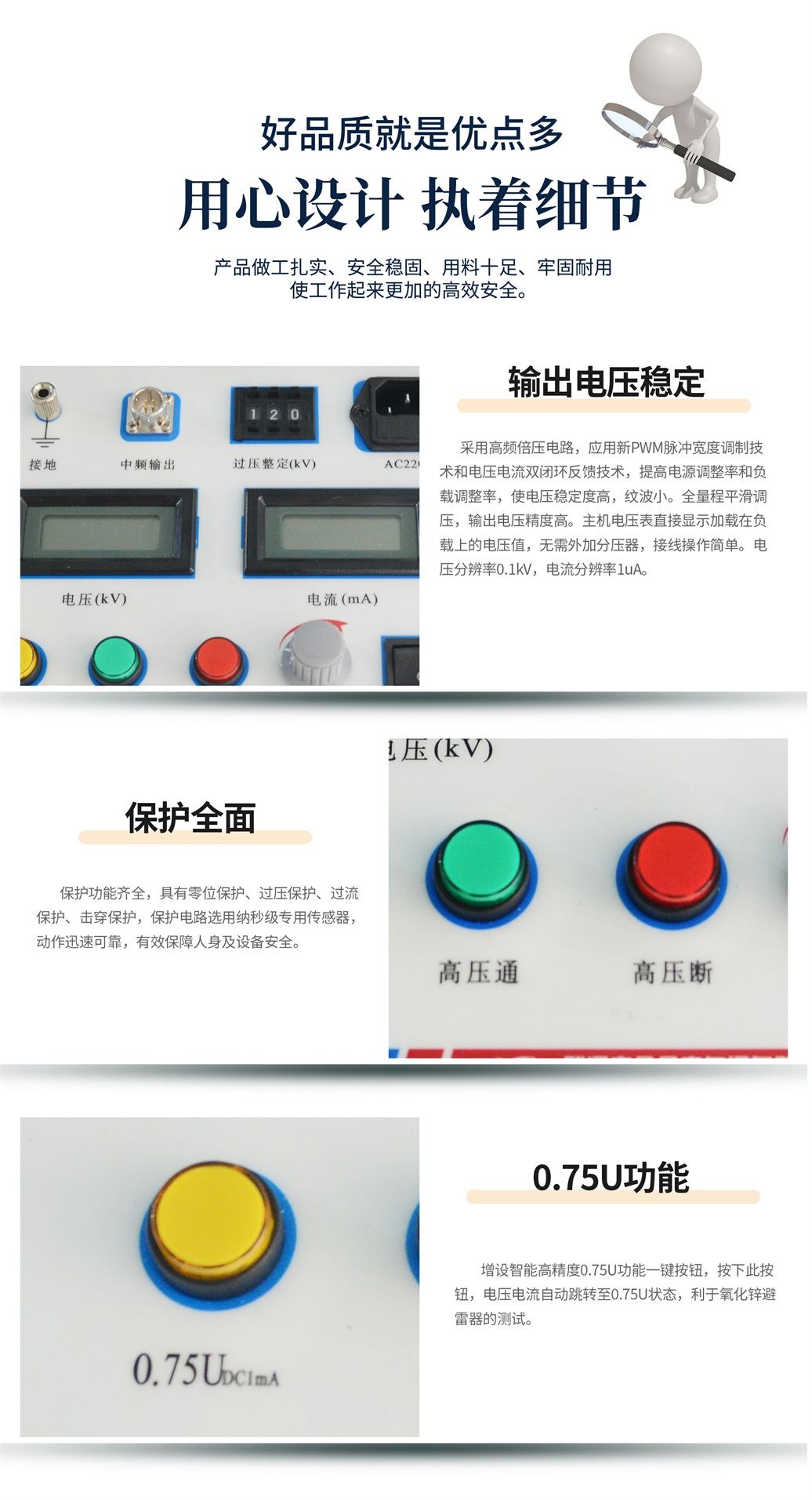 (5)增设高精度0.75UDC1mA功能,为做氧化锌避雷器测量带来极大的方便。