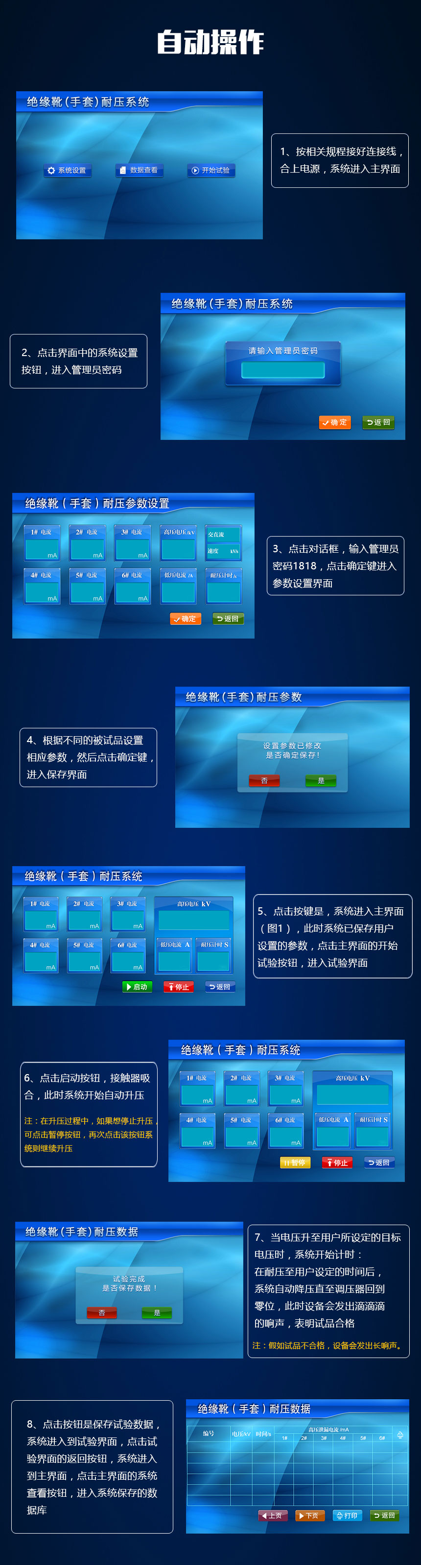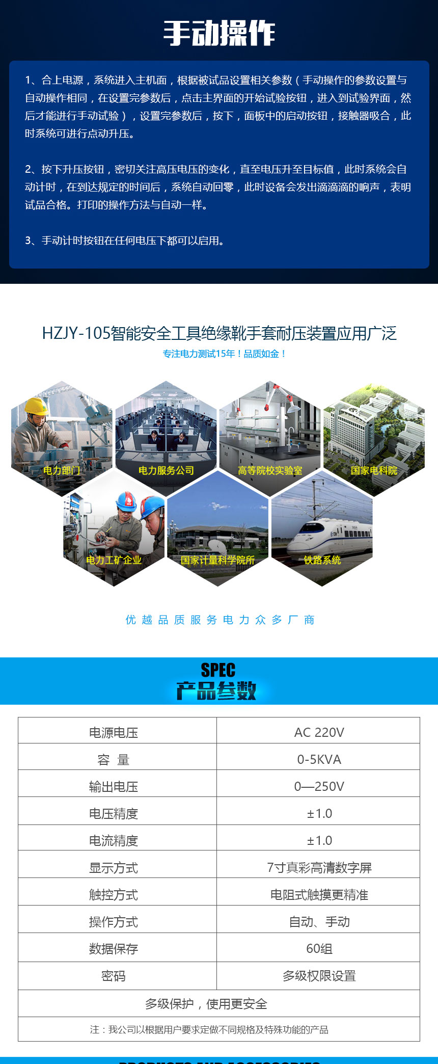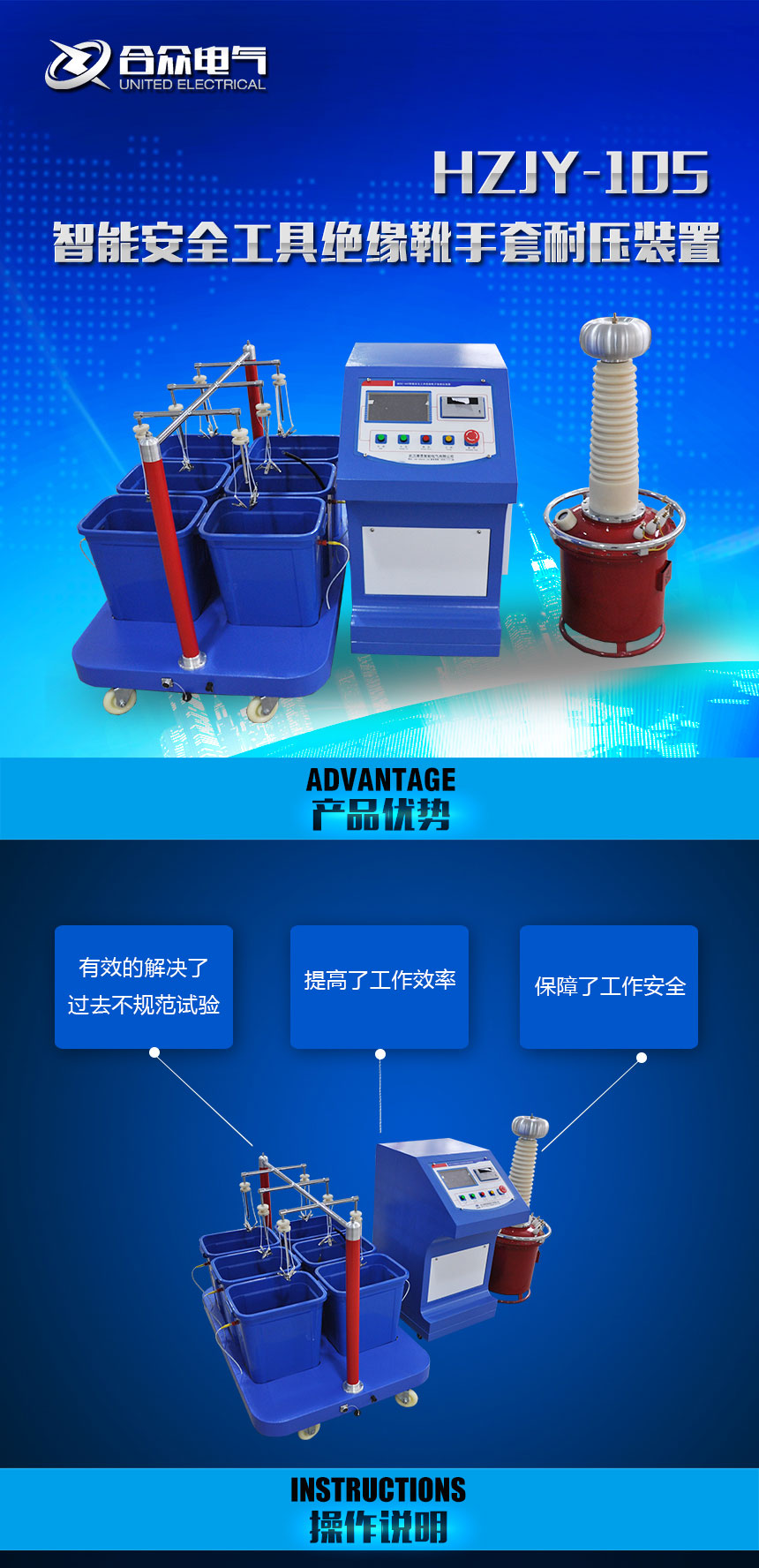 HZJY-105智能安全工具绝缘靴手套耐压装置,采用先进的微电子处理技术,全部使用过程可提前进行设置,全中文界面,操作简单明了。全部测试项目设定后自动进行测试,无须人工干预。