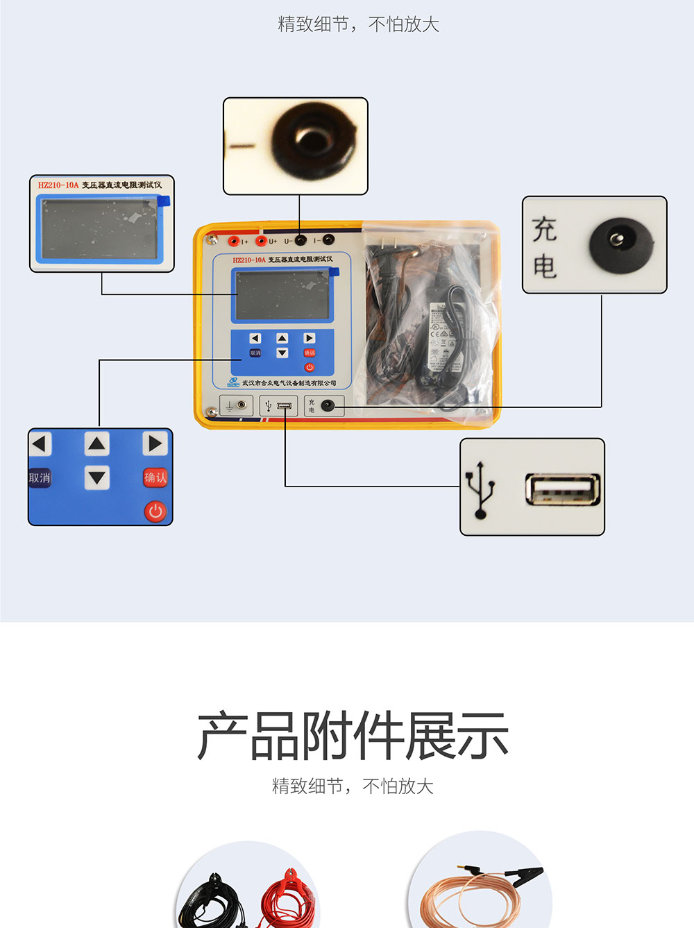 直流电阻测试仪 HZ210-10A 变压器直流电阻测试仪是一款创新型产品,内置大容量锂电池,仪器与测试线采用机线一体设计,产品体积小巧,便于携带。产品不仅适合变压器、互感器、电抗器等感性试品的测量,而且适合铜排、导线、开关触点等阻性试品的测量,仪表测试速度快、准确度高。