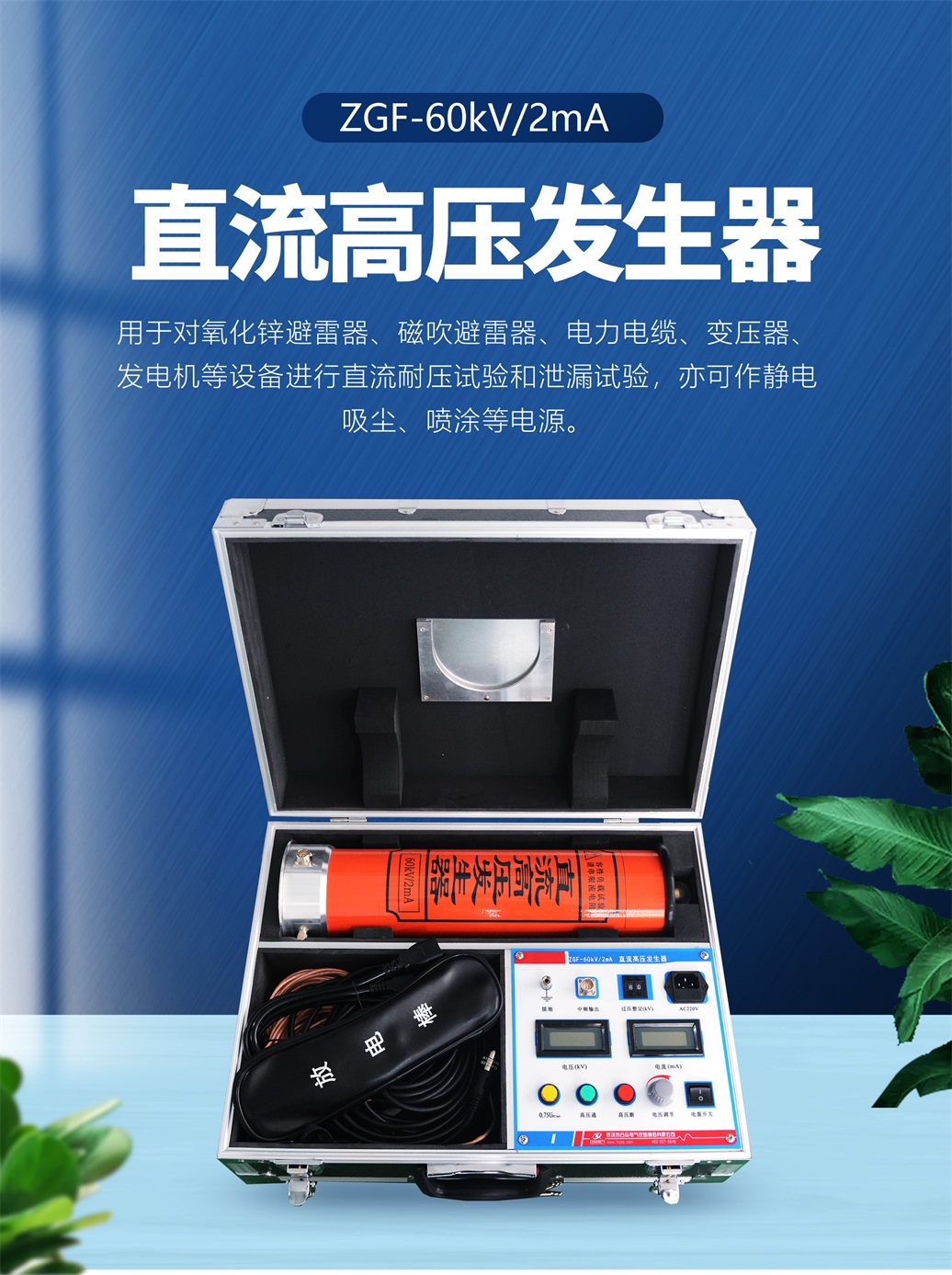 产品别称:ZGF直流高压发生器、直高发、直流泄漏测试仪、泄漏电流测试仪、高压发生器、中频直流高压发生器、便携式直流高压发生器、直流高压发生器。