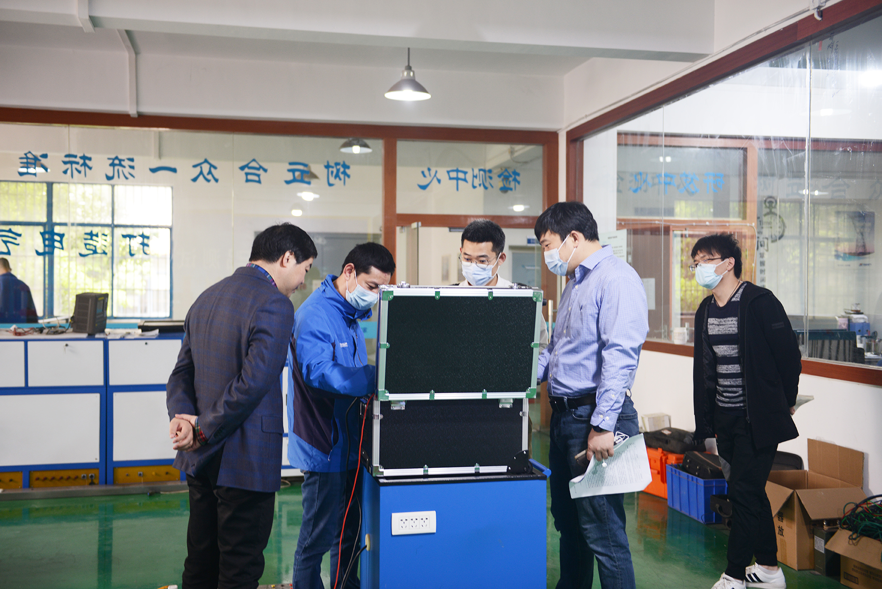 王教授一行先参观了我司生产车间的变频串联谐振的生产流程和相关产品检测技术设备,对现场井然有序的生产、严谨规范的工艺和实时过程检验质量控制给予了充分的肯定。随后来到我司产品测试中心,验收相关产品,并现场学习,试验操作使用。