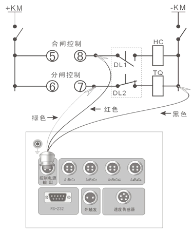 注意:必须断开被测开关控制箱内的控制电源(通常是将控制箱内的控制电源与控制母线相连的保险拨掉),但不能切断开关机构的储能电源。