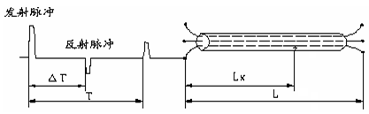 电缆故障测试系统测量电缆故障时,电缆可视为一条均匀分布的传输线,在电缆一端加脉冲电压,则此脉冲按一定的速度(决定于电缆介质电常数和导磁系数)沿线传输,当脉冲遇到故障点(或阻抗不均匀点)就会发生反射,用闪测仪记录下发送脉冲和反射脉冲之间的传输时间△T,则可按已知的传输速度V来计算出故障的距离Lx,Lx=V·△T/2,如图10所示。