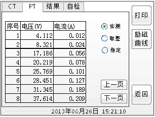 智能互感器测试仪的励磁数据