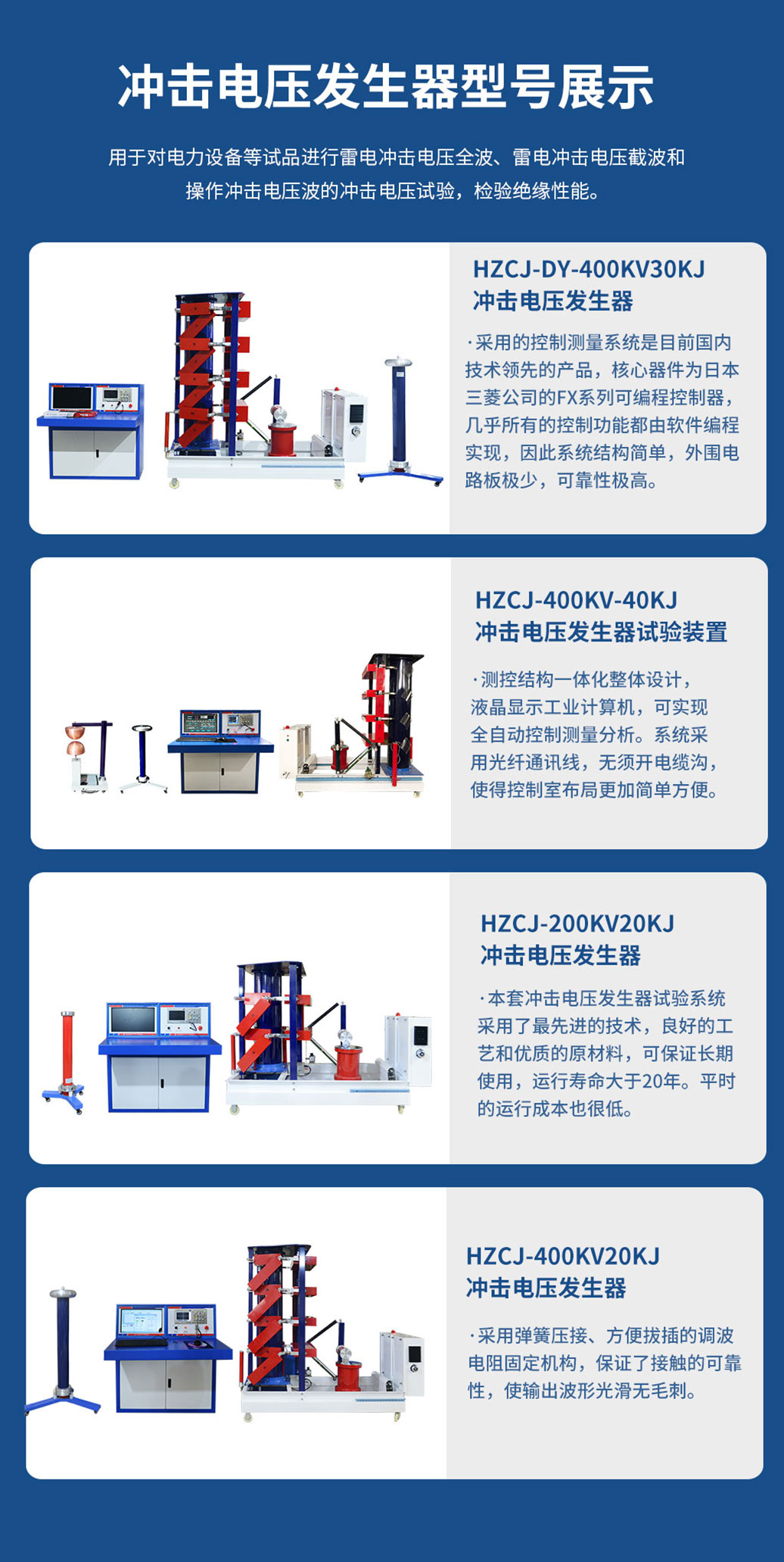 产品别称:冲击电压发生器,雷电冲击电压发生器试验装置,雷电冲击电流发生器,电压发生器试验装置