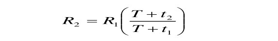 式中R1、R2分别为在温度 t1、t2时的电阻值;T为计算用常数,铜导线取235,铝导线取225。