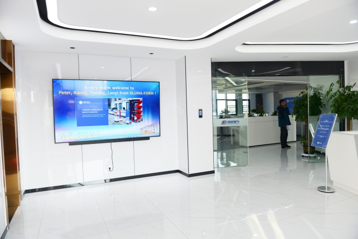 客户一行来到我司全新的工业园区,在总经理、外贸业务部经理及相关人员的陪同下,参观了我司新的办公楼、产品展示厅以及配套设施。在会议室,通过全方位的数字化展示,客户对我司新园区的规划,高标准新厂区的建设,以及后期生产、办公配套设施设备的升级完善有了进一步的了解。